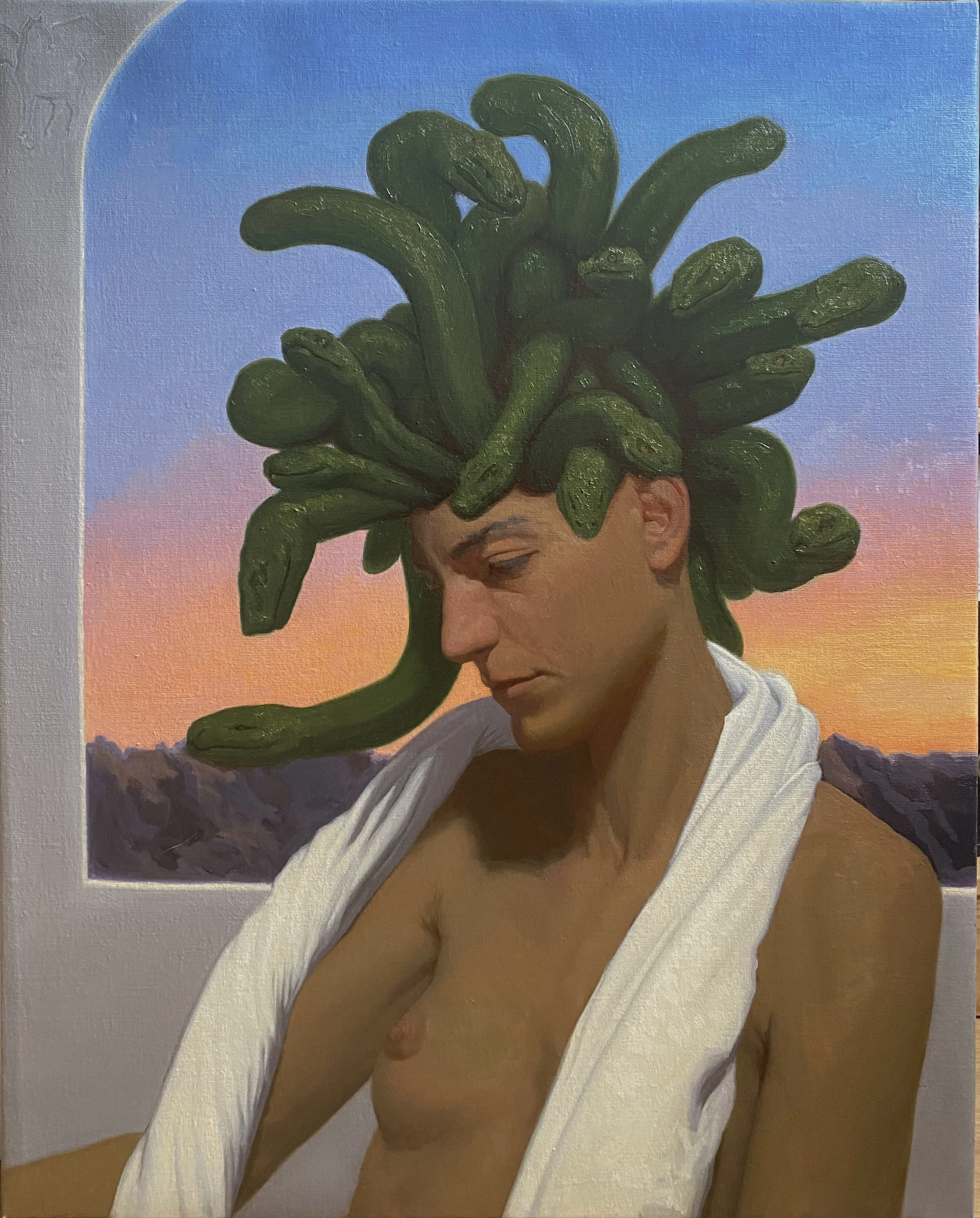 Pleinair Academic Works Portraits Orpheus Wondering To Athena Memories Medusa Man with flowers Quiron Alice